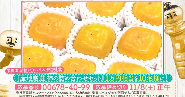 テレビ朝日DAIGOも台所 視聴者プレゼント! 柿の詰め合わせセット1万円相当が抽選で10名様に当たる。DAIGOさんMCの料理番組です。毎週月~金 ひる1時30分放送。 DAIGOも... -