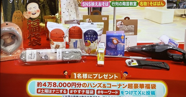 カンテレ・フジテレビ土曜はナニする!?視聴者プレゼント! やす子が作ったハンズ&コーナン福袋が当たる。毎週土曜あさ8:30~9:55放送の番組です。 土曜は何する!?やす... -