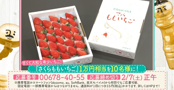 テレビ朝日DAIGOも台所 視聴者プレゼント! さくらももいちご1万円相当が抽選で10名様に当たる。DAIGOさんMCの料理番組です。毎週月~金 ひる1時30分放送。 DAIGOも台... -