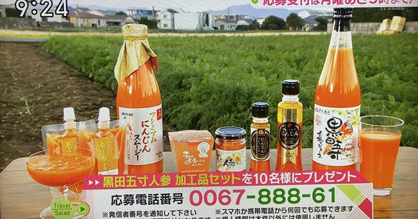 抽選で塩ジンギスカン500g・有田みかん5kgと醤油のセット・黒田五寸人参加工品セットが当たる!