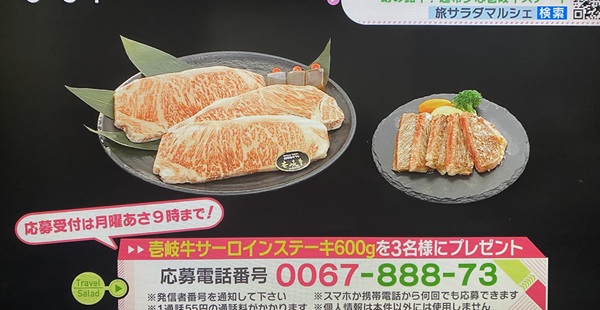 朝だ!生です旅サラダ今日の視聴者プレゼント応募電話番号を発表しました!